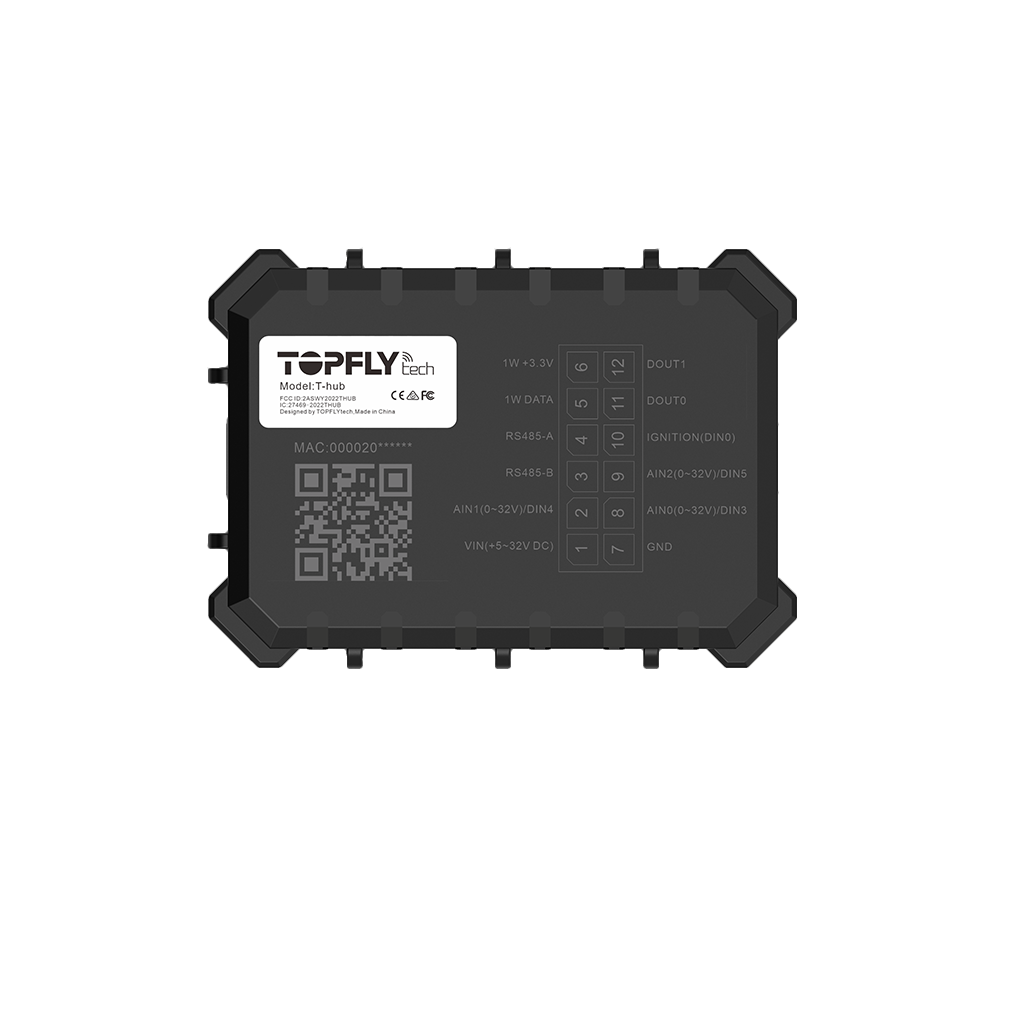 BLE I/O extension hub that wirelessly expands tracker functionality. Add digital or analog I/O devices effortlessly for advanced vehicle and asset monitoring setups.